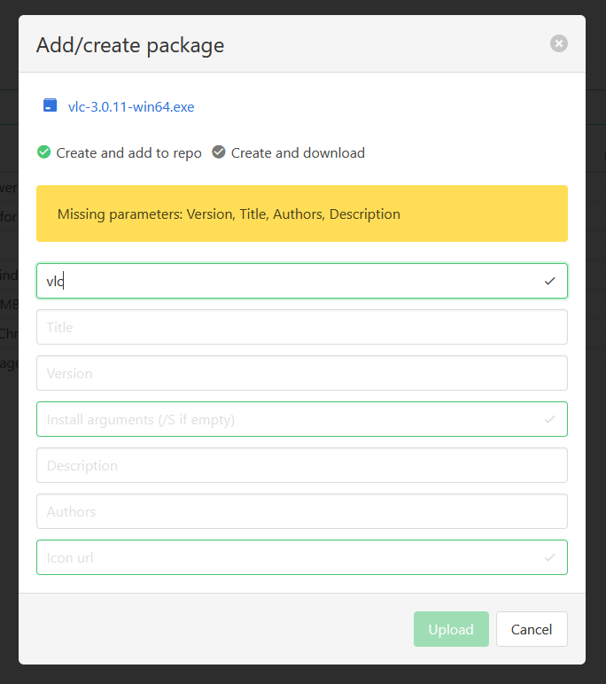 Add/create package is now a modal instead of a full page. It should now be easier to create and upload a new package. We can see on the image above what parameters was missing when a package creation was attempted.