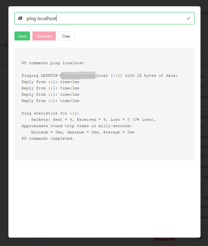 Above is the package command details (computer packages page). Here we have just a little more information about the command execution process, like what user executed the command, status, and the actual command. Some styling was added as well.