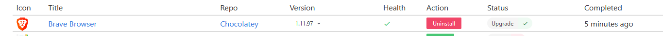 This is a package row on the computer packages page. The column after the uninstall button should now make it easier to understand the flow of the command and status.